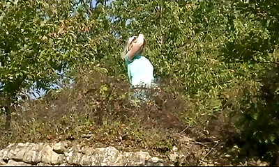 Insatiable German lady gets screwed by three hard and loaded cocks outdoors
